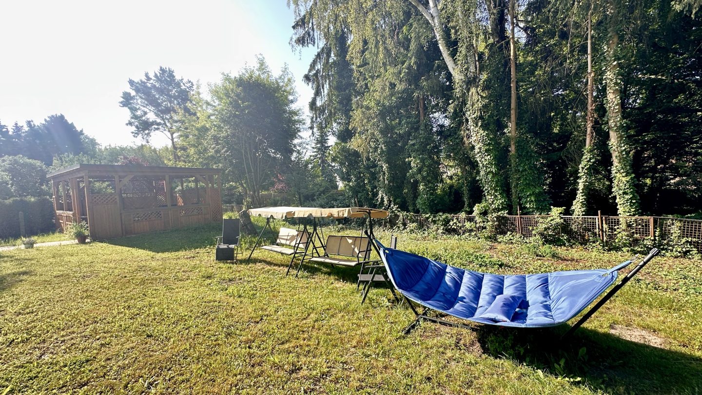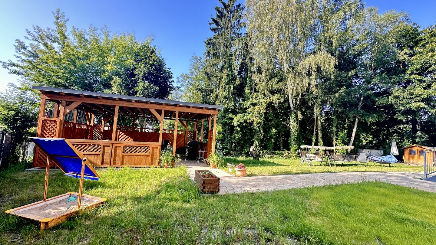 • im Garten befinden sich ein Pavillon mit Grillbereich, Hochbeete und umfangreiche Sitzmöglichkeiten