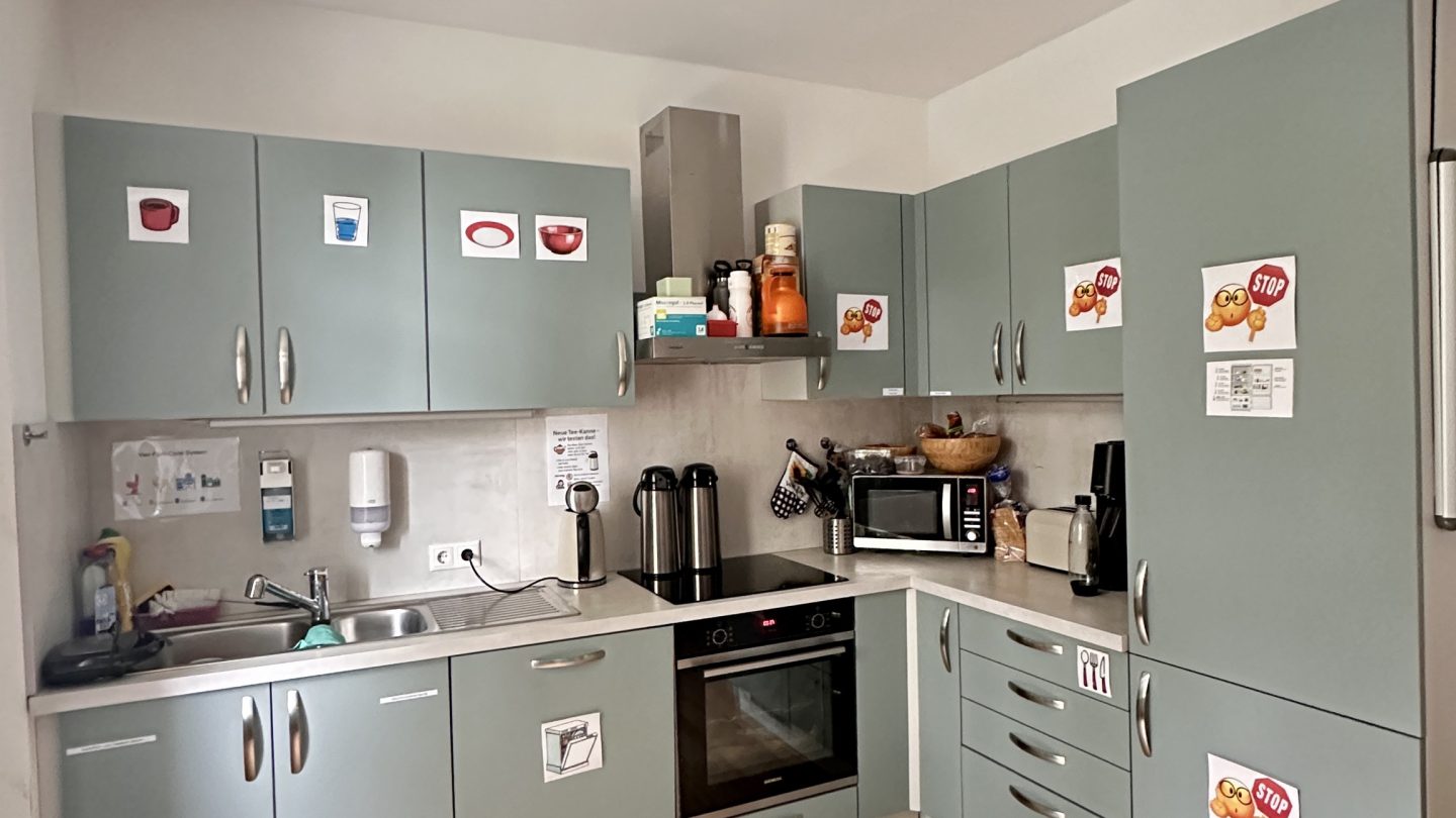 • in jeder WG gibt es ein Wohn- und Essraum mit Küche
